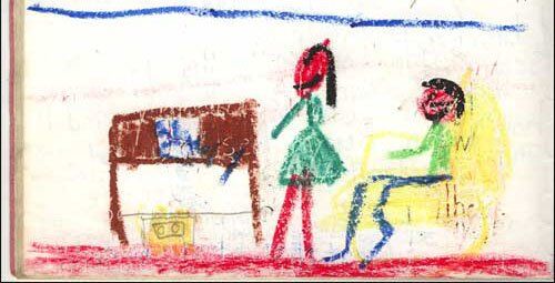 10/08/2008LOL! There's one drawing in my book which depicts my dad apparently walking on water. Must've been pretty flattering for them to see how we really thought of them 🙂 (Of course, I guess my dad was too busy being mortified about the blue moovy to really care…)