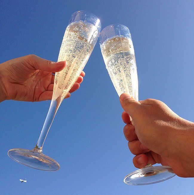 (Champagne in the sunshine on Friday evening. Also pictured: tiny aircraft. Hai, tiny aircraft!)