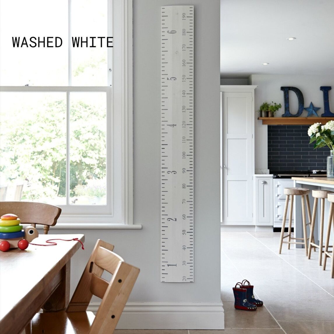When I was a little girl I had a rag doll I used to be allowed to mark my height on the inside of the closet door in my bedroom every year. I remember when my parents sold that house, I was really sad at the idea of something so personal being covered up by the next owners of the house, so Terry had the idea of getting a giant ruler instead, that we can record the baby’s height on at different ages, and then take with us if we ever move. Terry WAS actually going to try and just make one of these himself, because most of the ones we found were basically just planks of wood with numbers on them, but then we found this one, which is bevelled to look like an actual ruler, and which was therefore deemed to fit his very strict criteria.